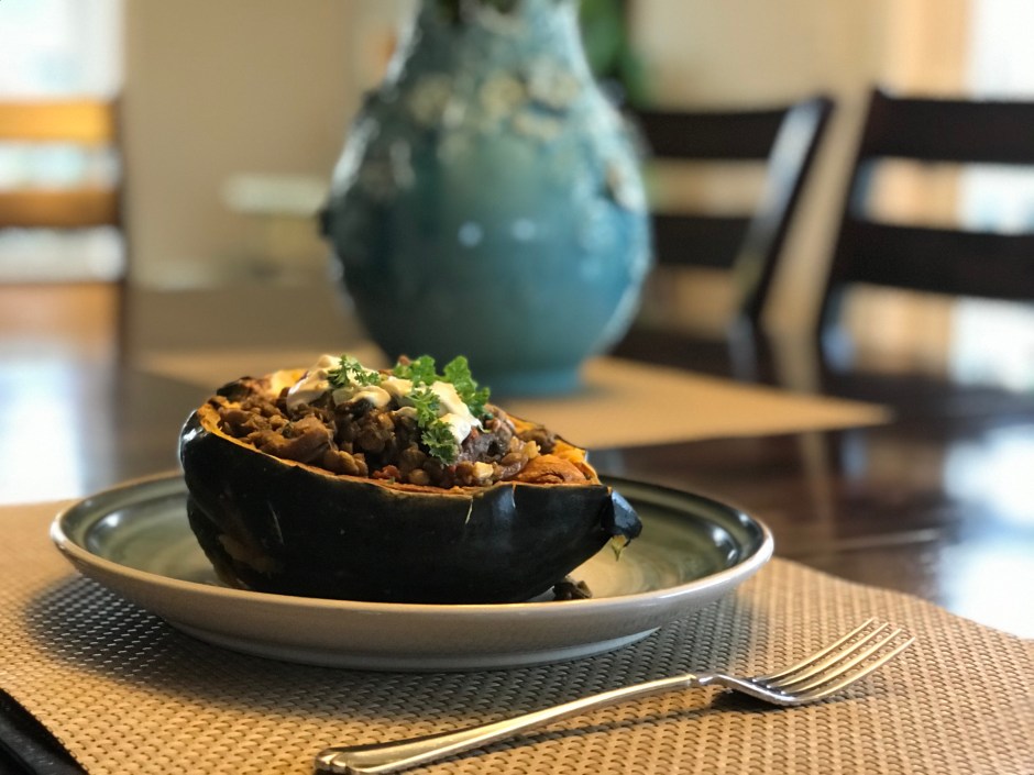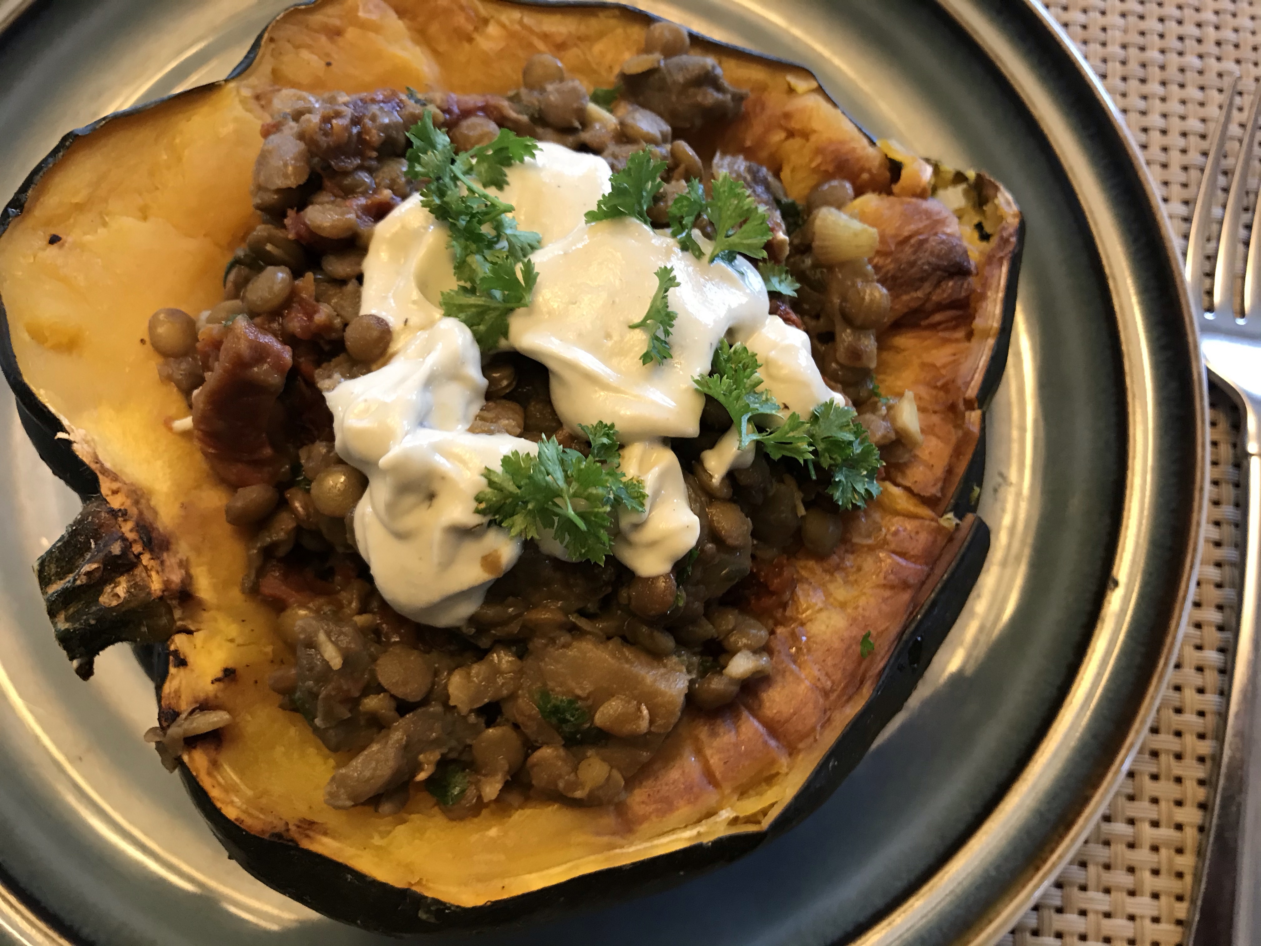 Lentil-stuffed Squash with Herbs & Mushrooms