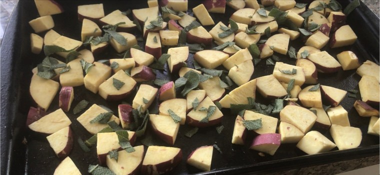 2. Place the chopped butternut squash on a baking sheet, sprinkle with avocado oil and sea salt and roast at 400°F for 15-20 min. If you will be make the pilaf recipe, roast an entire butternut squash (see Notes).