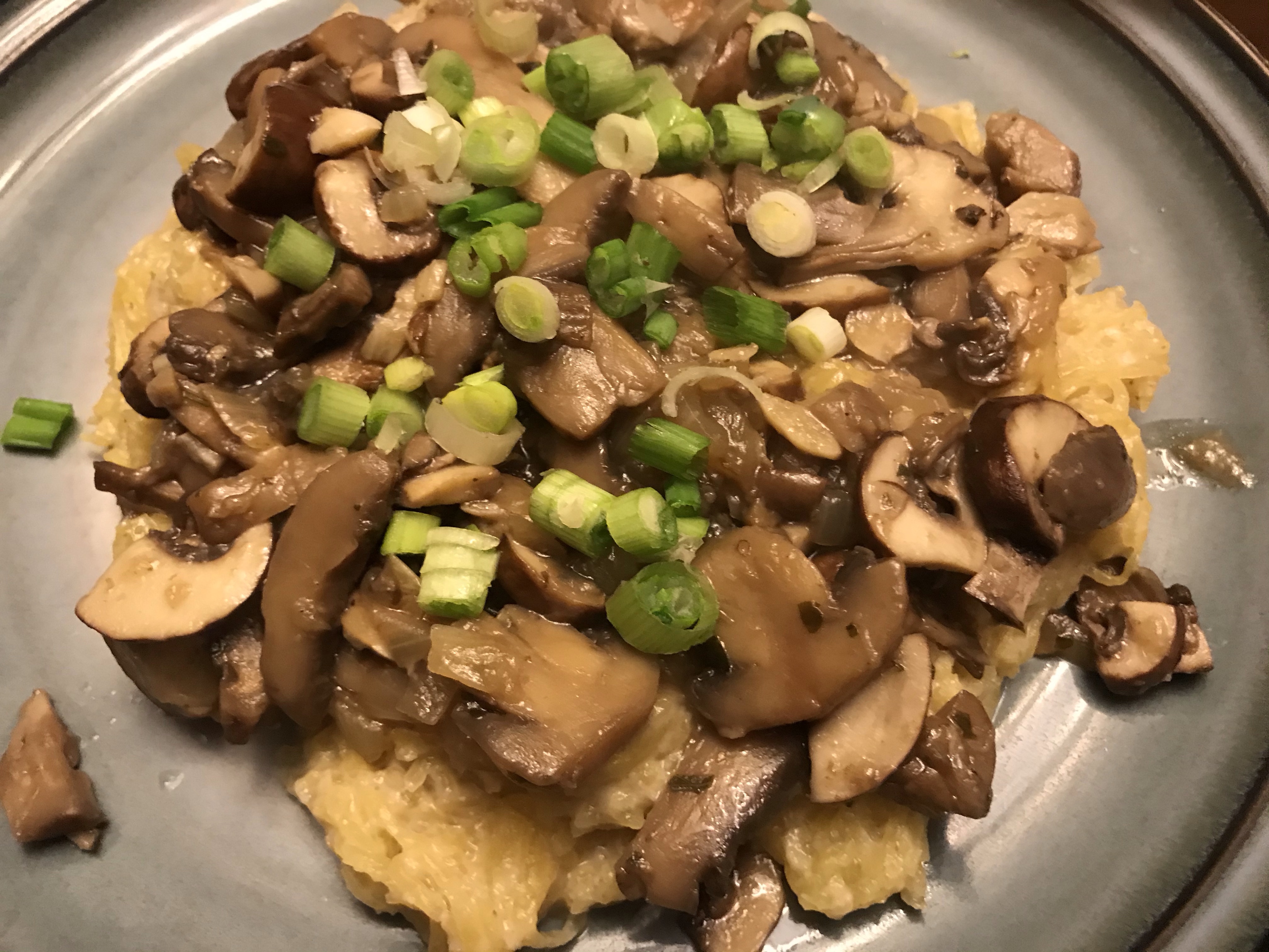 - Serve squash, Creamy Shiitake Sauce, with additional mushroom. Sprinkle with either sliced green onions or parsley on top. Enjoy!